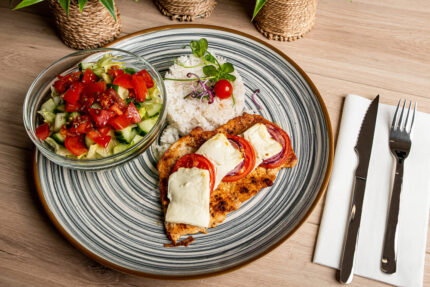 Mediterrán fűszerekkel pácolt csirkemell, lágyan grillezve. A friss saláta és citromos ízvilág igazi görög hangulatot teremt az asztalnál.