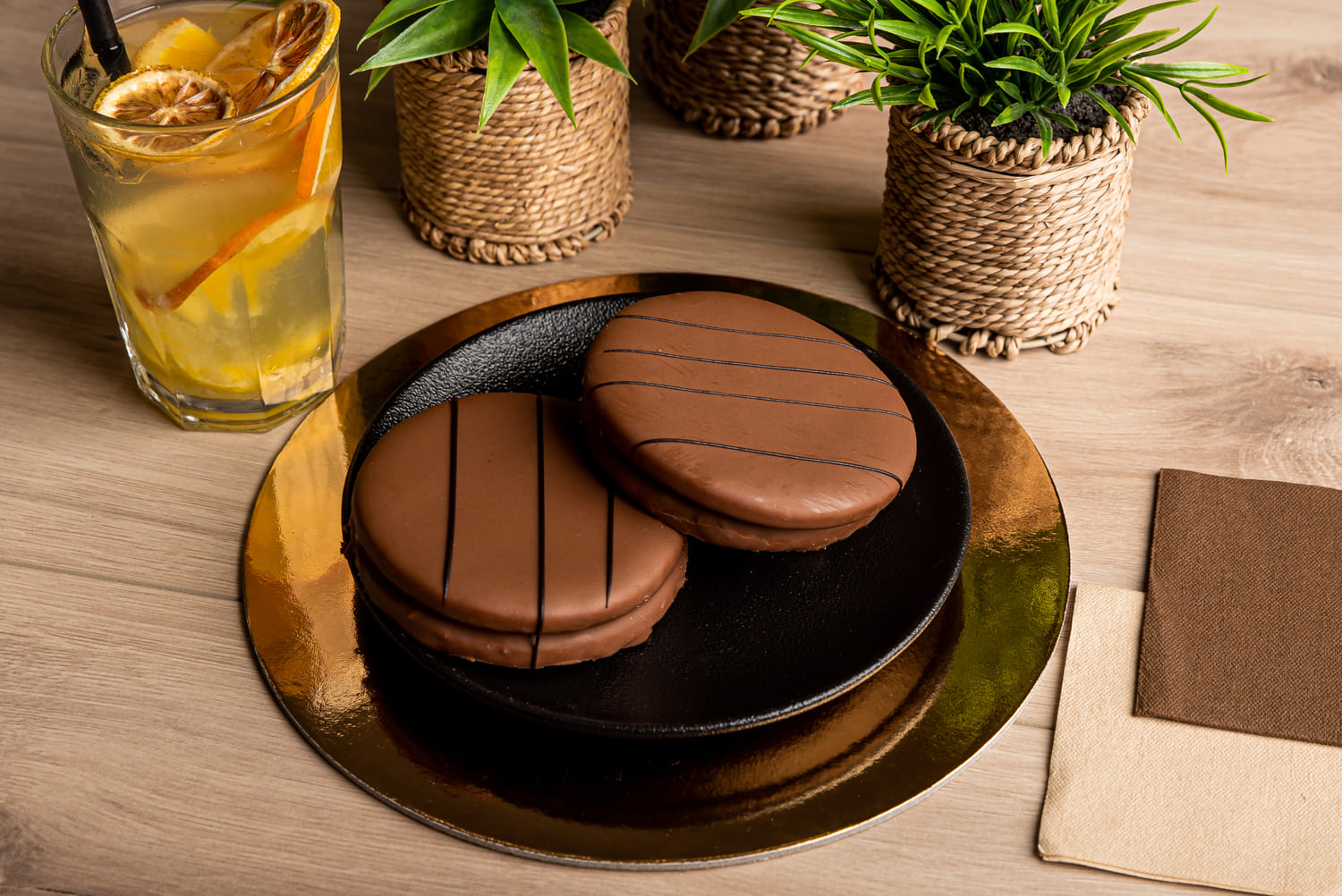 Két omlós linzertészta között vegyes gyümölcslekvár, csokoládéval borítva, a klasszikus finomságok kedvelőinek.