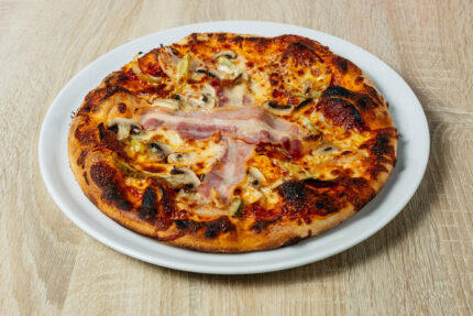Klasszikus olasz ízvilág: pizzaszósz, sonka és mozzarella sajt.